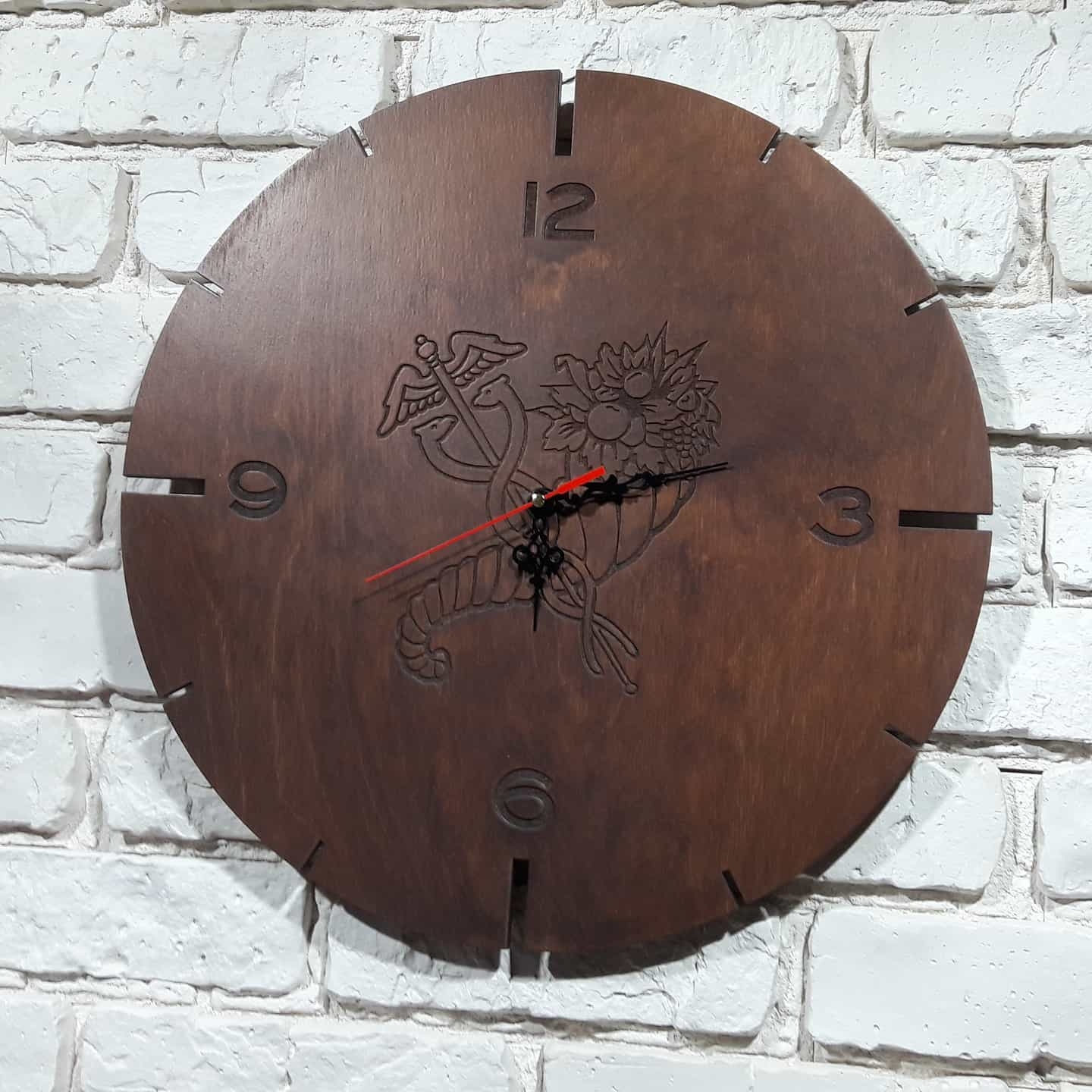 Дизайнерские настенные часы из фанеры с логотипом Харькова